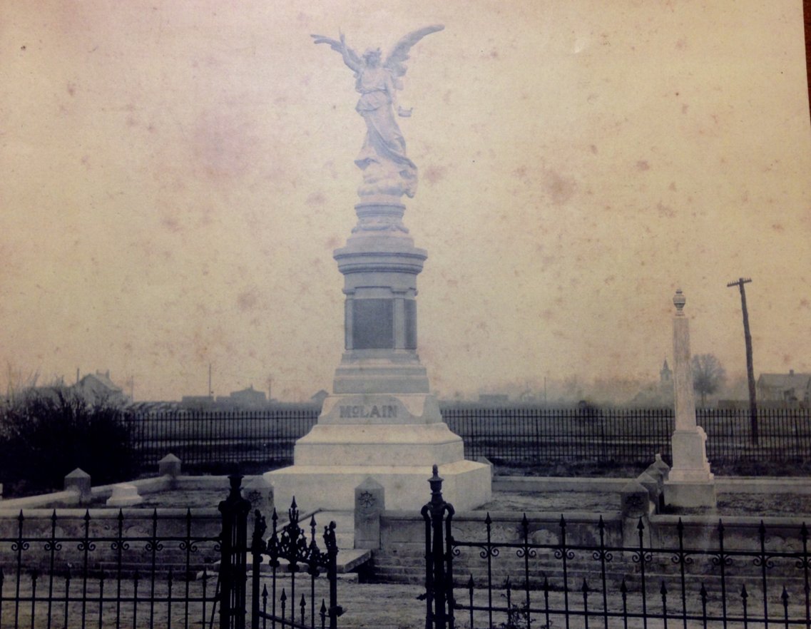 The McLain Monument rests in Monroe’s Old City Cemetery. Next to the Saunders Monument, it is probably the most well known memorial in the cemetery. The angel’s hand points up towards Heaven and she carries a crown in her left hand. She marks the family plot of Captain L.D. McLain who founded the Union Oil Mill in West Monroe. His in-laws the Crosleys lie buried here too.