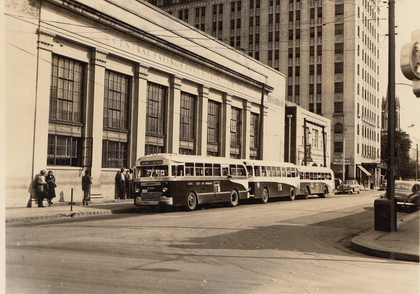 This actually is the early 1950’s. The Ford automobile behind the buses is either a 1949 or 1950 model.