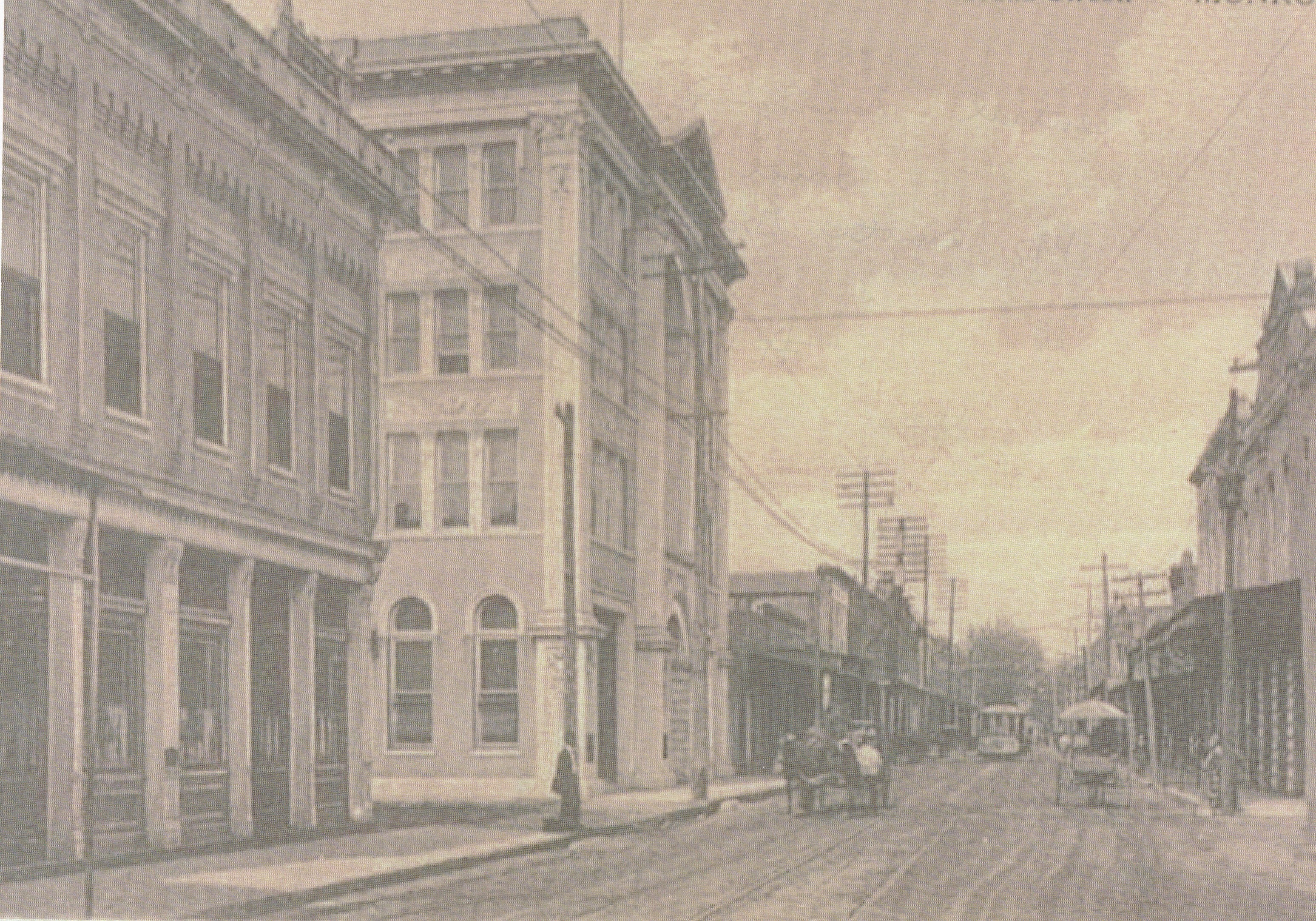 This is a great shot up South Grand Street around 1910. The big pretty white building on the left was built in 1906, the same time the streetcars were put in (you can see one coming down the street.). Unfortunately, the building was torn down in the 1970’s.
