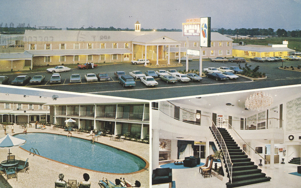 I remember this building as a kid. It stood next to Interstate 20, right off of Hwy. 165. It always stuck out, due to a story my dad told me once. The last time Elvis came to Monroe, Dad happened to be near the Ramada and saw Elvis with his entourage coming down the steps. He says that was as close to him as he ever got! Unfortunately, “Elvis slept here” didn’t save the building and it came down in the late 80’s or early 90’s.