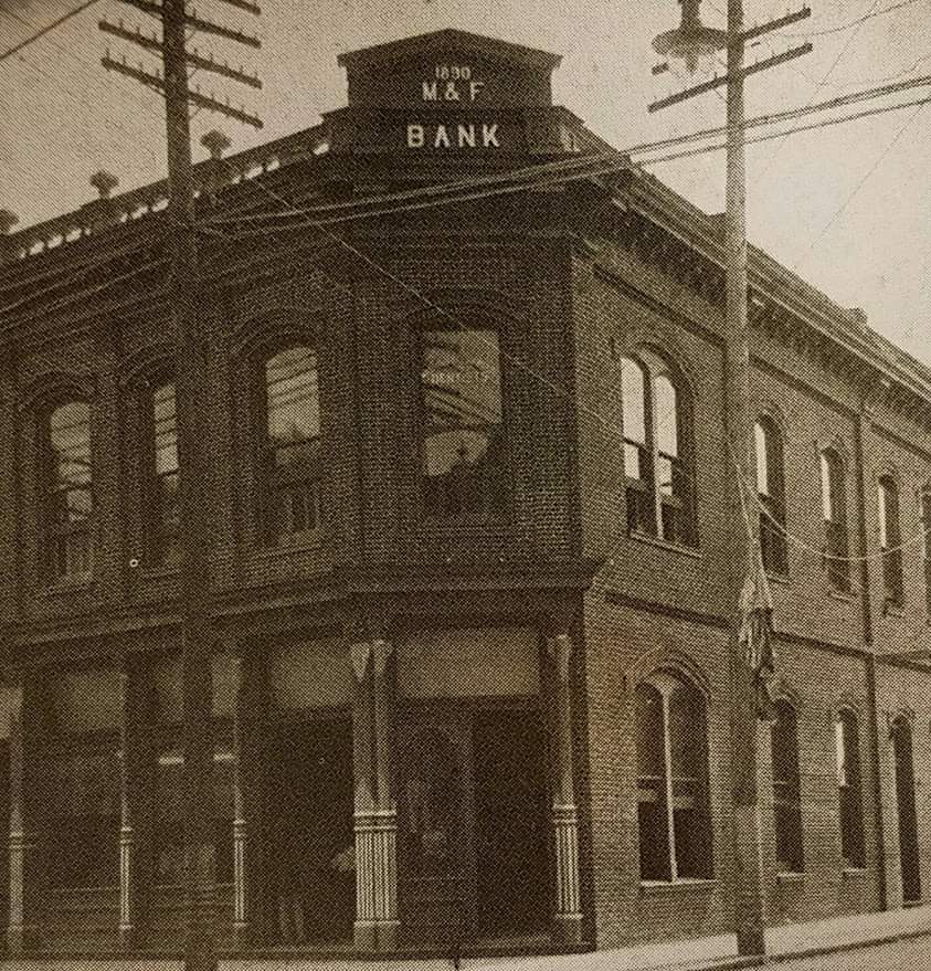 A contract we learn has been entered into by the Merchant’s and Farmer’s Bank and Mr. H.C. Voss, the well known contractor, for the erection of a handsome two story building on the lot at the northwest corner of Grand and DeSiard streets. The building will have a frontage of over one hundred feet and will be built on the most approved style of architecture, and besides being a valuable acquisition to the city’s business interests will be an ornament to that portion of the city.