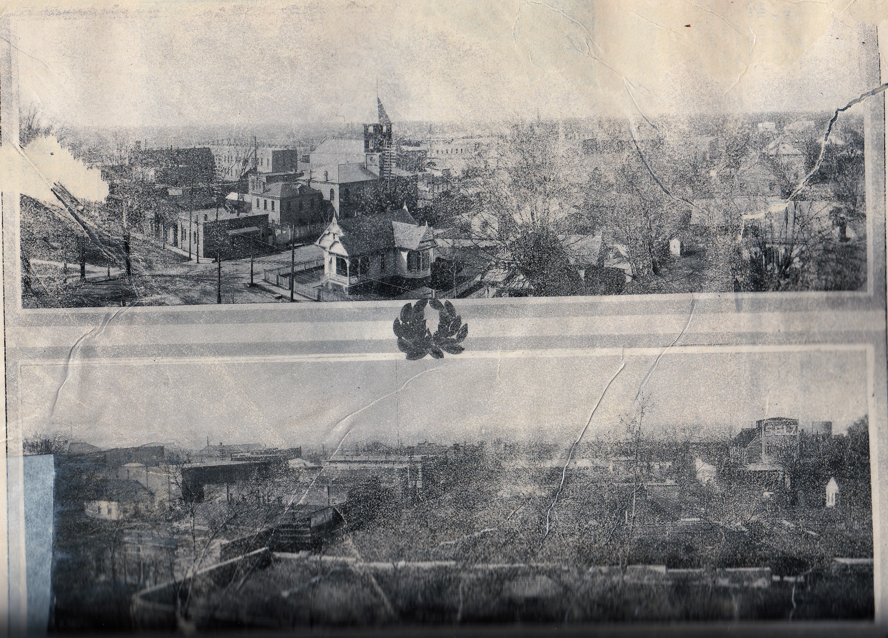 Our first photos from the Monroe Illustrated were labeled, “BIRD’S-EYE VIEW OF THE CITY.” The first caption stated it was a view of City of Monroe from City School Tower. Of course, the City School was the Monroe City High School, which sat where Anna Grey Noe Park is now. I think the the building with the tower in the foreground may be the old City Hall, which sat on St. John. The street intersecting it is Wood. The bottom photo was labeled, “Business Section from Monroe Progressive League Building”. I am unfamiliar with that building, and the paper is badly faded on this one. It may be the Sugar Theatre. The 1912 city directory stated that was where their offices were.