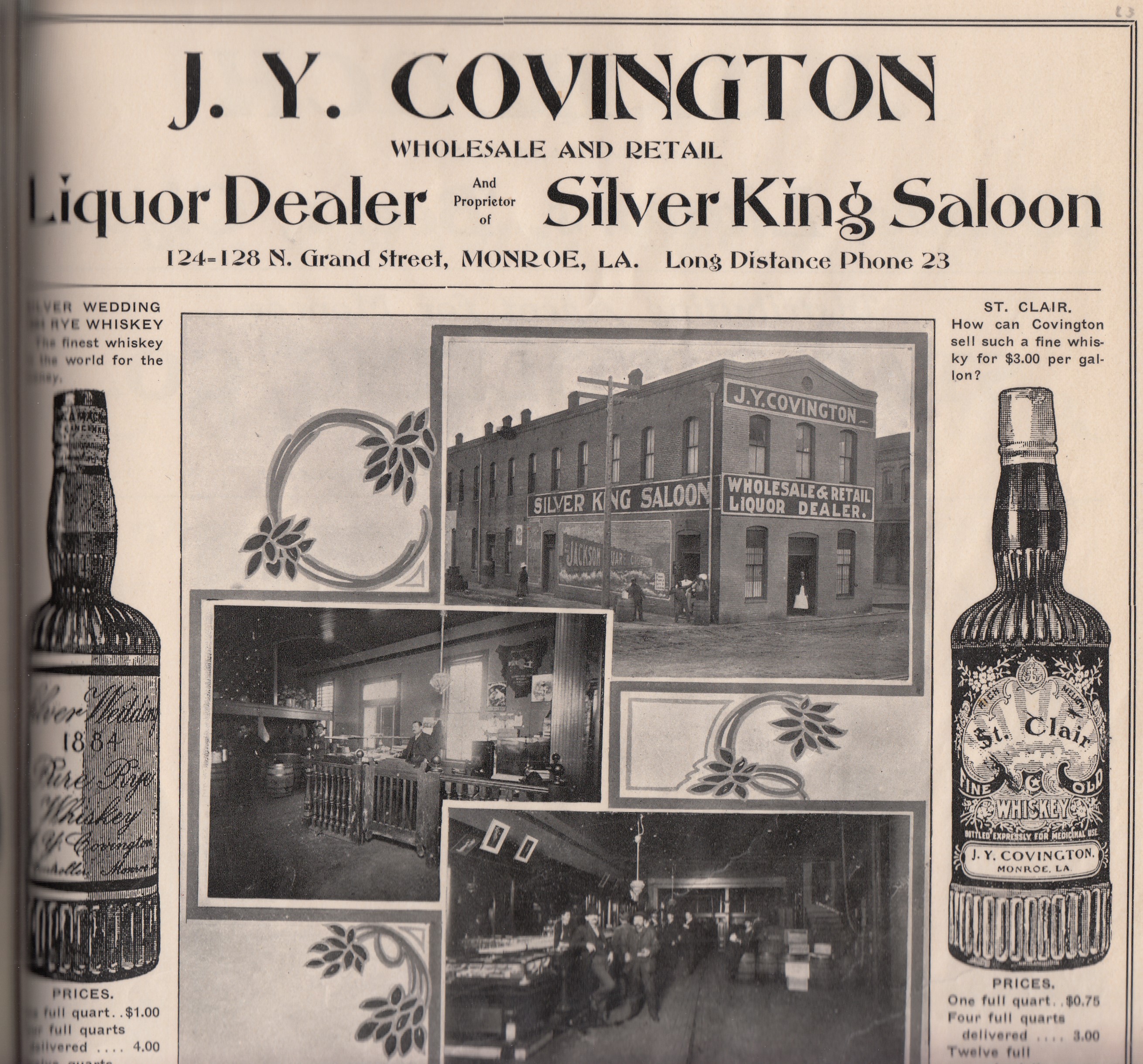 This one was located in the 100 block of North Grand street in the triangular lot across the street from the old Southern Hardware. You can find many of Covington’s whiskey jugs in local antique shops.