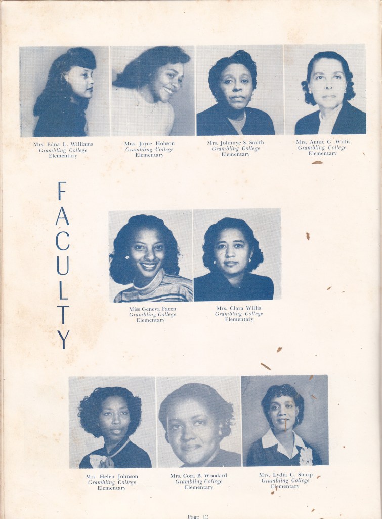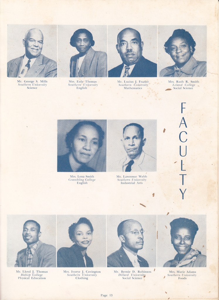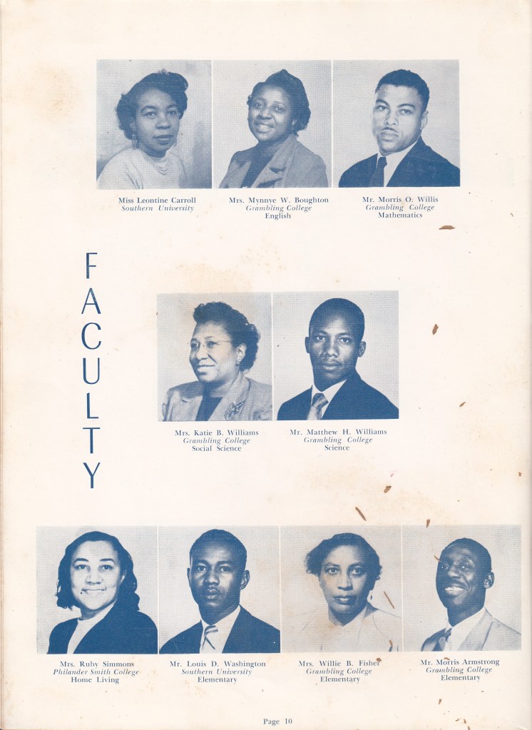 The next four images from the yearbook are the Faculty pages. Take a look at some of the names. Carroll. Facen. Willis. B.D. ROBINSON! just to name a few. Big names in leadership, education and Civil Rights.