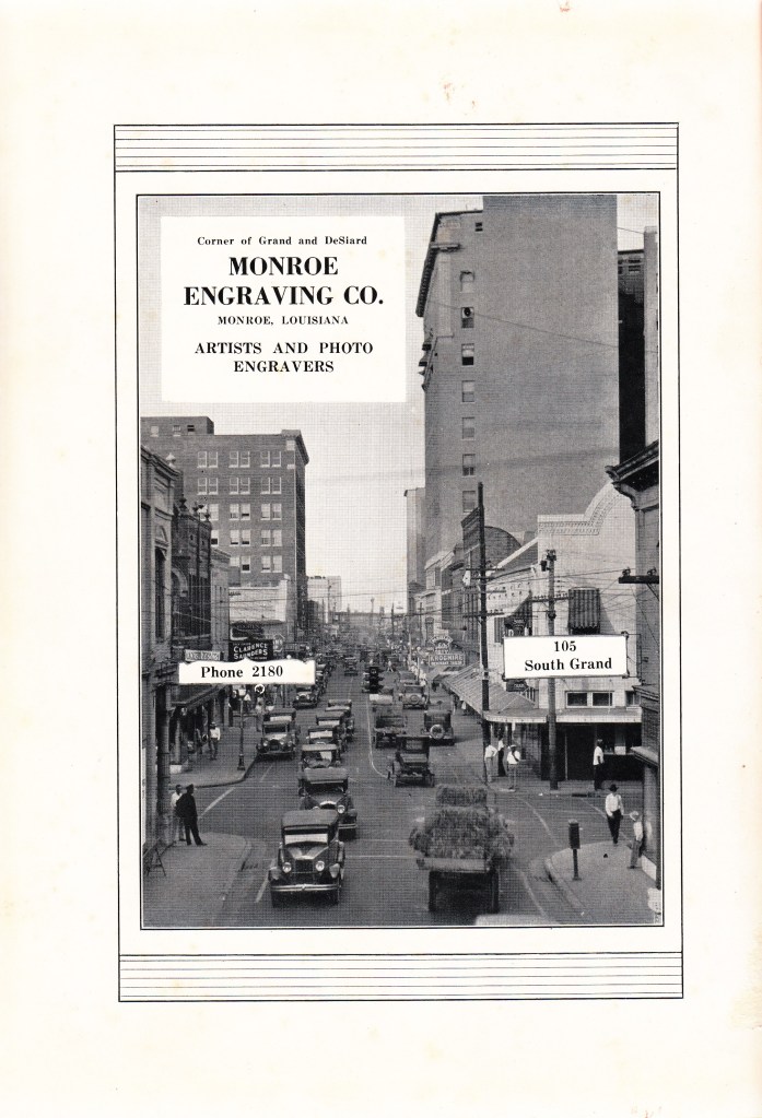 The above photo is an ad for the Monroe Engraving Company published on the last page of the yearbook. It shows DeSiard Street from the Endom Bridge. Wow!