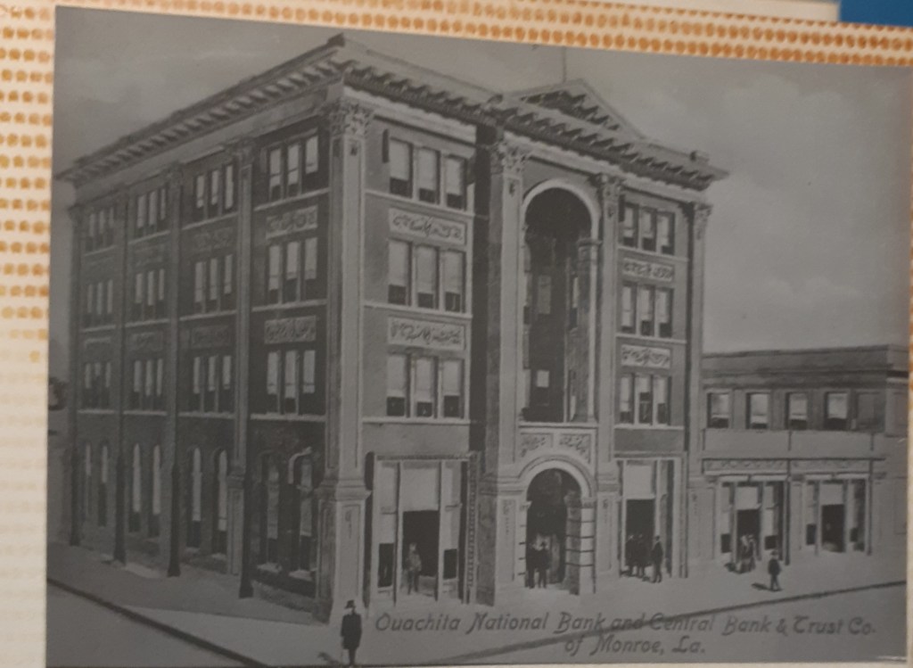 I found this copy of a drawing of the old Ouachita National Bank and Central Bank & Trust building, stuck in a ratty binder down in south Louisiana this weekend. I think this was one of the most beautiful buildings in Monroe when it stood on South Grand! This, however, doesn’t compare with what else I found. I’ll give you a hint tomorrow!