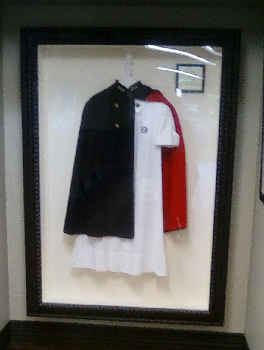 This is an original nursing uniform worn by a St. Francis nurse. Looks uncomfortable to me!