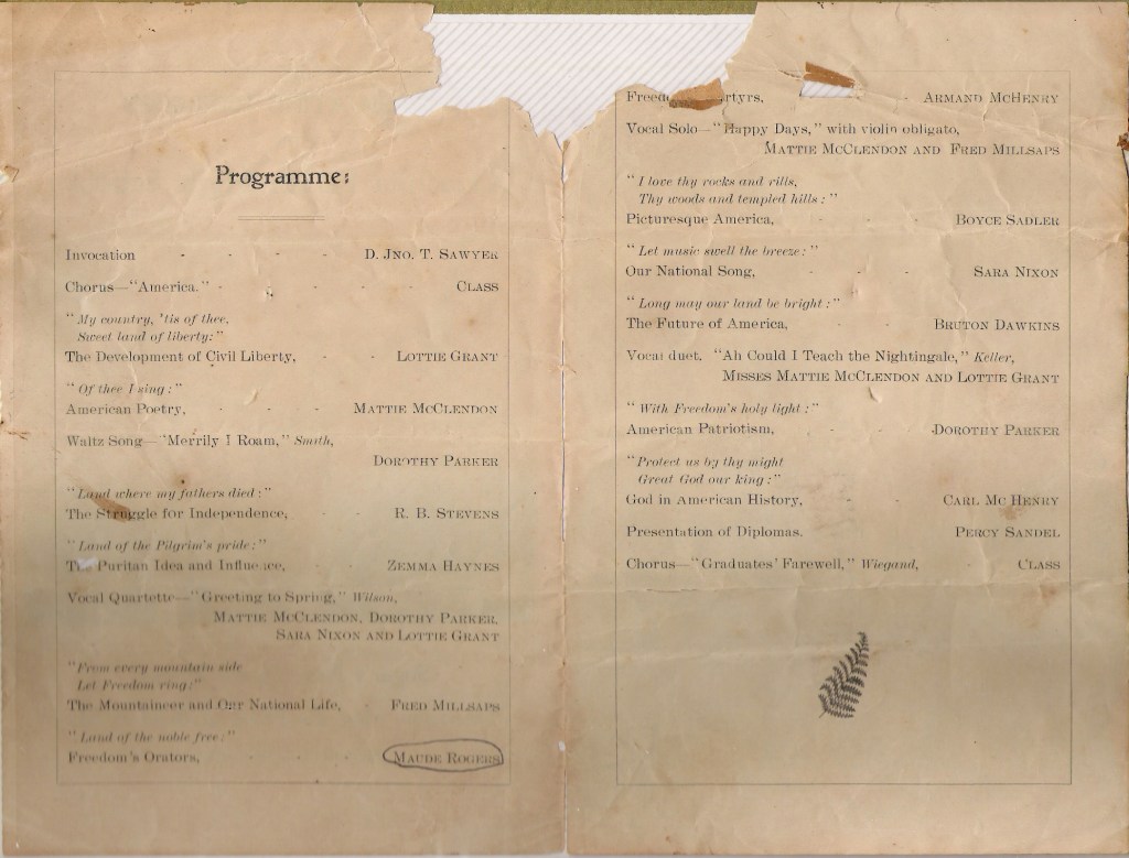 Monroe, May 27. – The graduating exercises of the Ouachita parish high school, were held last night in Lugar’s [sic: Sugar’s] new theater before a brilliant audience. The graduates were Misses Lottie Grant, Mattie McClendon, Dorothy Parker, Zemma Haynes, Maude Rogers, Boyce Sadler, Sara Nixon and Messrs. R.B. Stevens, Fred Millsaps, Bruton Dawkins, Armand McHenry and Carl McHenry. The latter was the valedictorian and the diplomas were delivered by Rev. J.T. Sawyer, pastor of the First Methodist church.