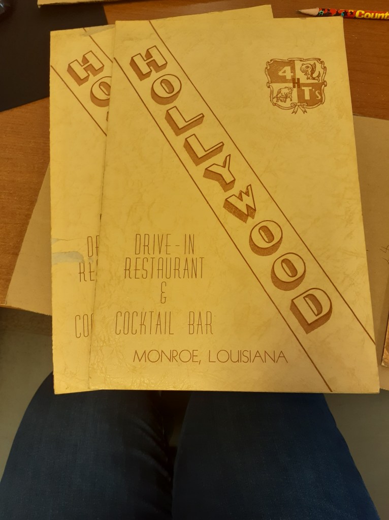The Hollywood was a fixture in the Garden District (903 N. 4th Street) for years (1938 – 1964). The building is still in existence, but is now an Indian food place. We were given two of these along with yesterday’s menus. You can see it here: https://louisianadigitallibrary.org/islandora/object/oplib-orv%3A90 .