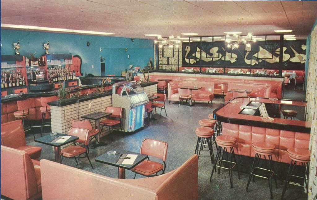 The above is a postcard I found online showing the dining room of the Palowsky Lounge and Steakhouse. The co-owners were Mr. and Mrs. J.R. “Jimmy” Plaisance and Mr. and Mrs. Stanley Palowsky. You could get a steak or chicken dinner or sit at the bar area and listen to Johnny Ferguson play on the Hammond Organ. It didn’t last very long from it’s grand opening in 1955. By late 1959, it reopened as the much better known Embers. If I have my addresses correct, it was just down from the McDonald’s in Lakeshore before the Hwy. 80 overpass.