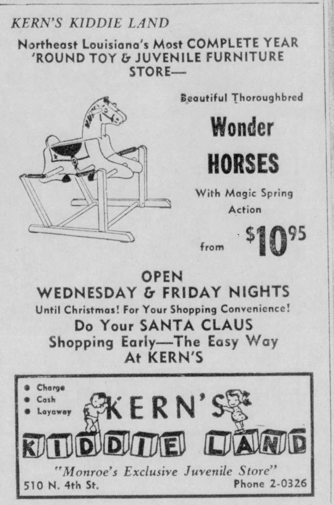 My generation had Howard Griffin Land O’ Toys, but previous generations remember Kern’s Kiddie Land.