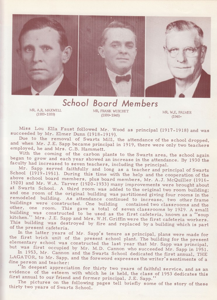 Here are the 1966 Swartz Gator yearbook pages about Swartz Schools. There are so many pages, I will have to make three posts to cover it all! Enjoy!