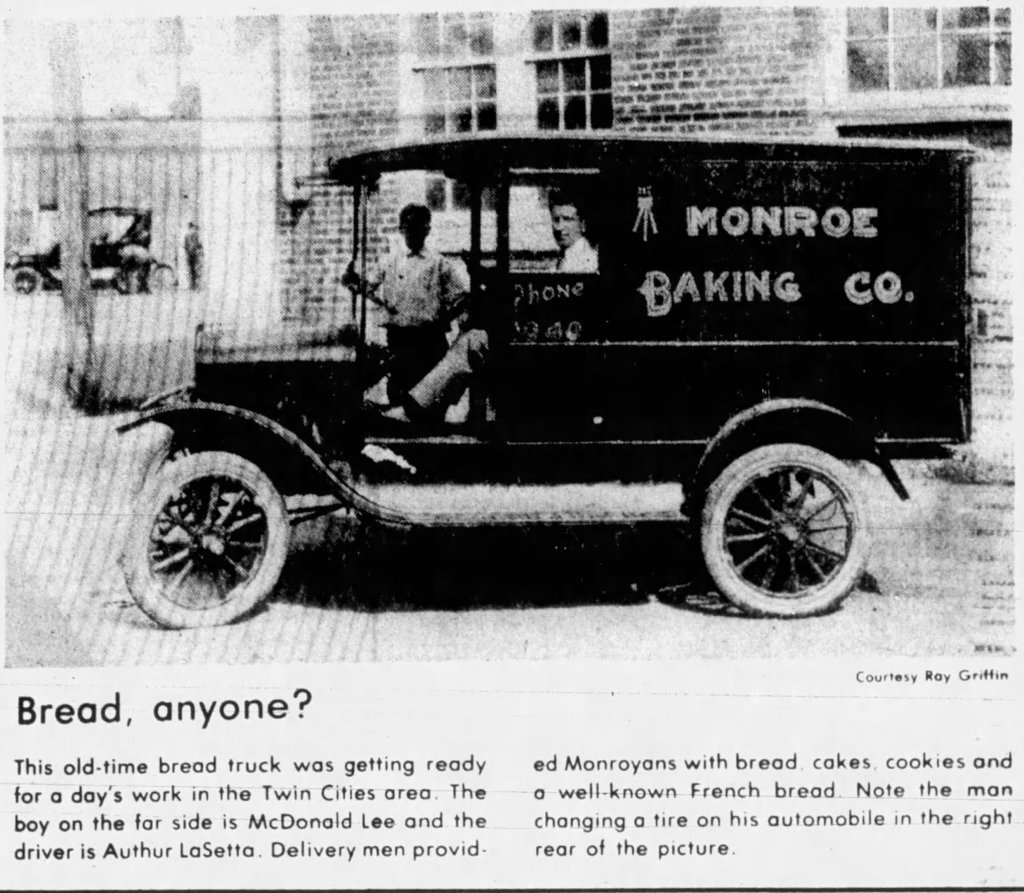No, I’m not talking about Ubereats, Doordash or Grubhub. Over one hundred years ago, Monroe had a bakery called the Monroe Baking Co. The bakery would haul fresh baked breads and sweets to Ouachita parish homes, using delivery trucks. They would go as far as Perryville, Sterlington, Swartz and Lamkin. If the person they were delivering to wasn’t there, they would leave the goods between the door and the screen, perfectly sure the customer would be by later to pay their bill! The Monroe Baking Co. was located at 701 DeSiard street until the business was sold in 1924 to the Iron Mountain Bakery. According to a 1981 article, the Monroe Bakery was the first in Monroe to sell square sandwich loaves!