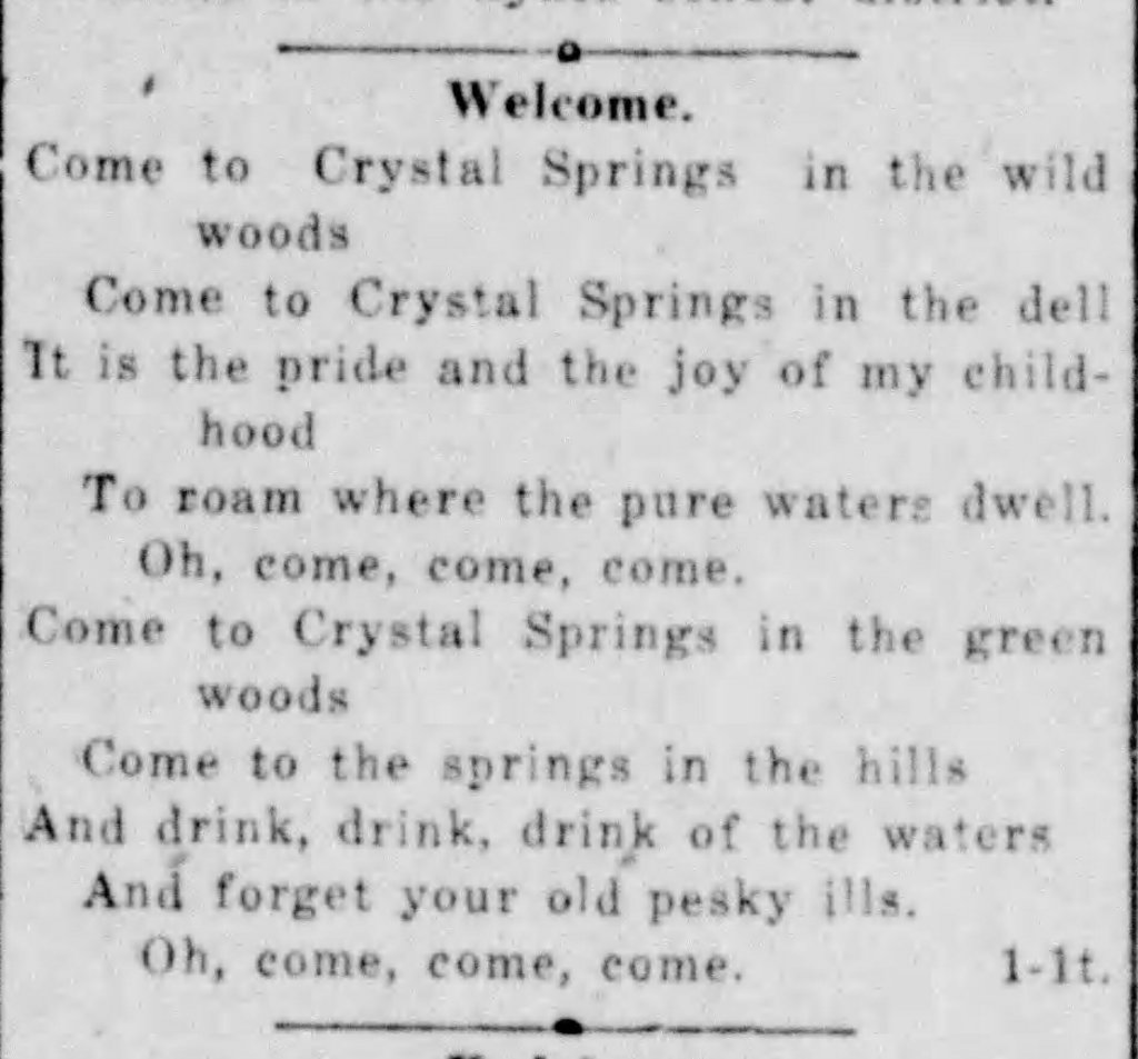 In 1925, it was rumored that the nearby Hasley Cemetery was contaminating the springs. Dr. Catlett vehemently denied this rumor and claimed the water had been thoroughly tested and found “potable”.