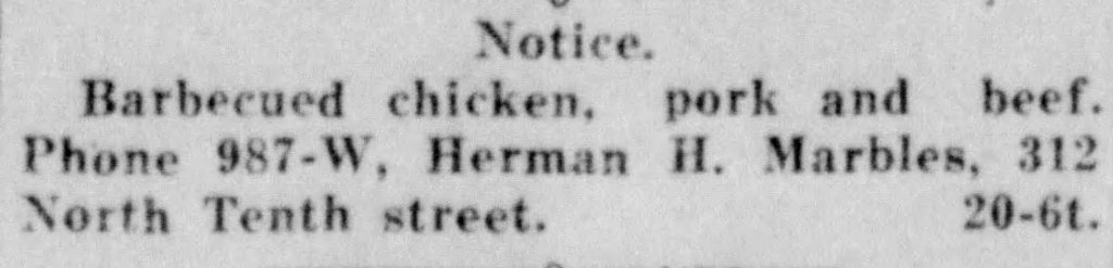 For more than fifty years, Marbles Barbecue was the best place in town to get barbecue. Mr. Herman H. Marbles’ barbecue was known far and wide in northeast LA and people of all races and backgrounds lined up for his great food! Mr. Marbles wasn’t just a great cook; he was active in civic, social, civil rights and church groups. He was a powerful leader in the community.