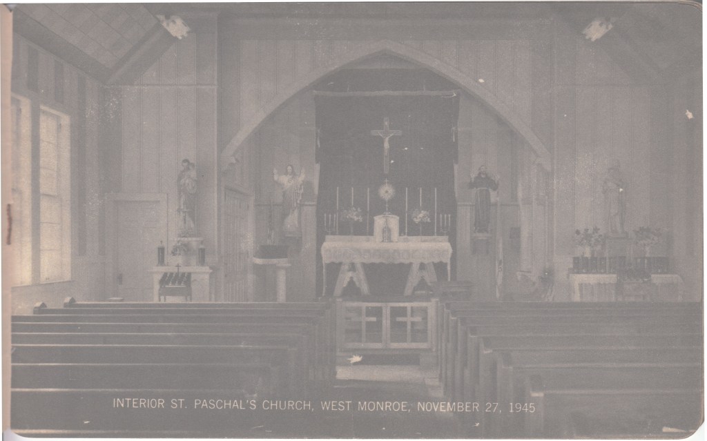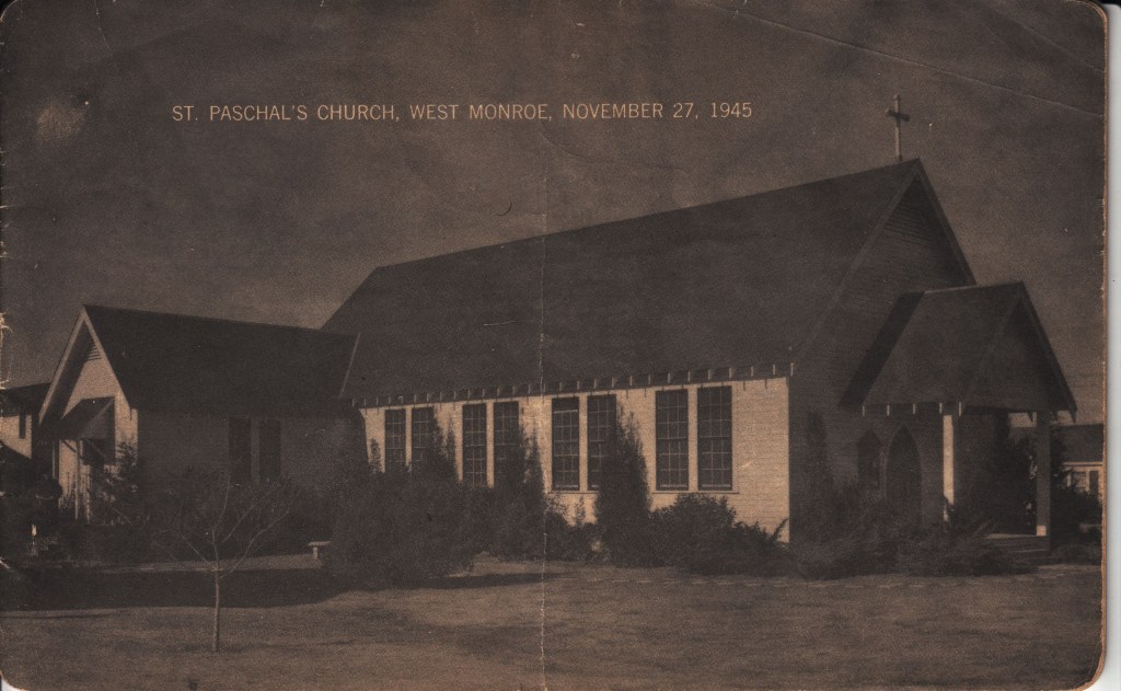 At one of my favorite antique shops in West Monroe last week, I found a little pamphlet from 1945 detailing the history of West Monroe’s first Catholic church, St. Paschal’s. There are some lovely photos in it of the church and school I will share in the next couple of posts.