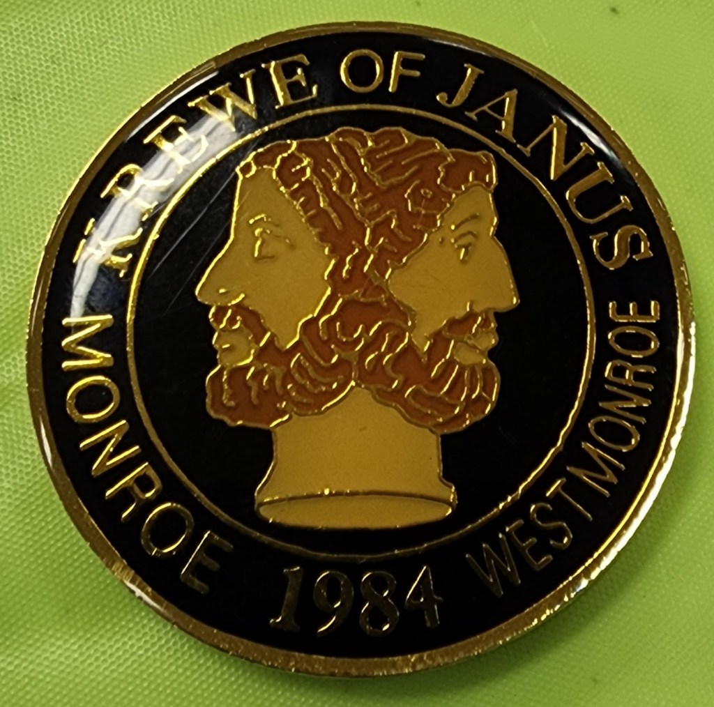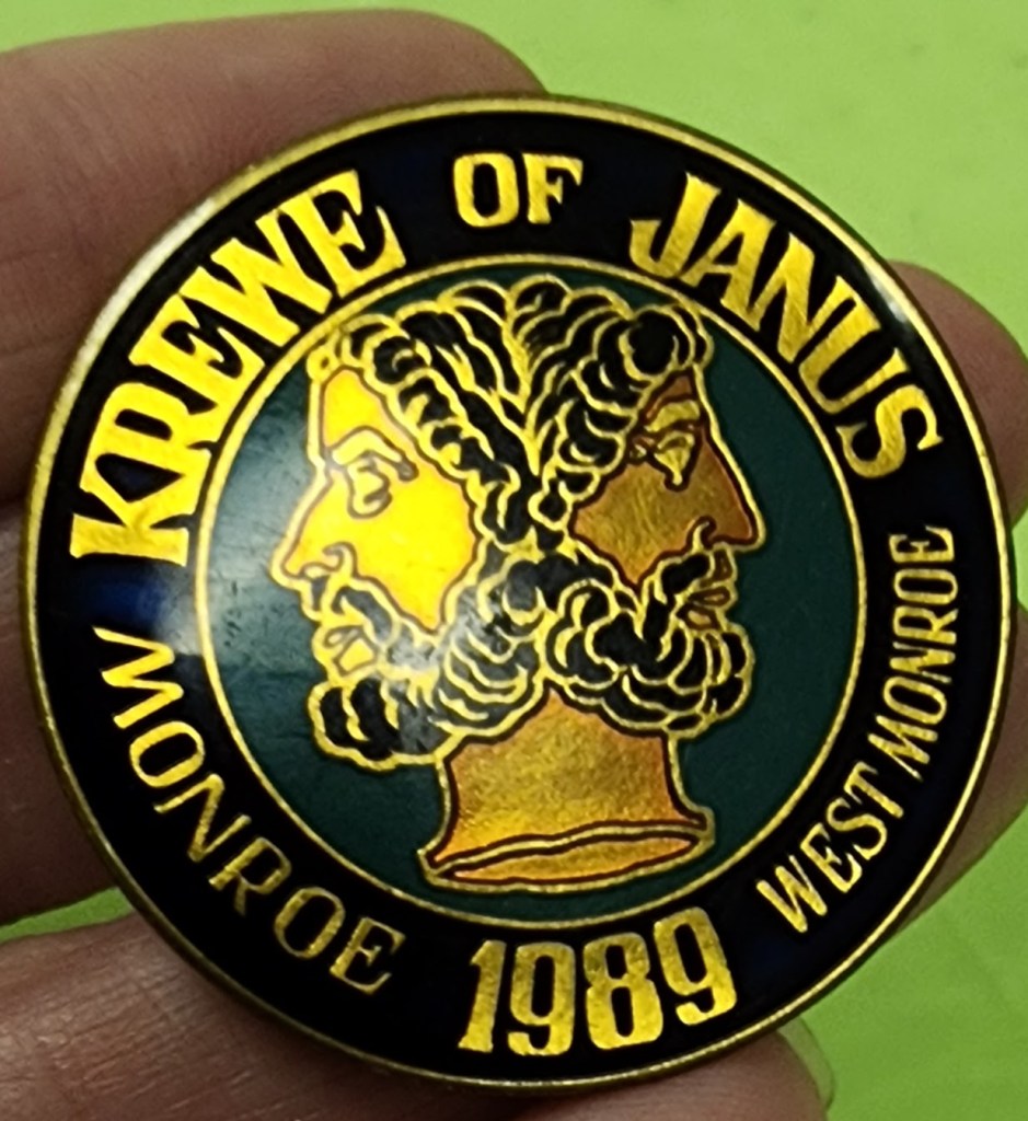 If you will notice, the side where the theme image should be is blank. The krewe logo side has a date of 1989 where the founding year of 1984 is usually found. If you will look back up at the older cloisonnes, they too had the current year in that spot. Is this a misprint error, or is this what the 1989 cloisonne looks like? Other krewe members who saw it were just as puzzled.