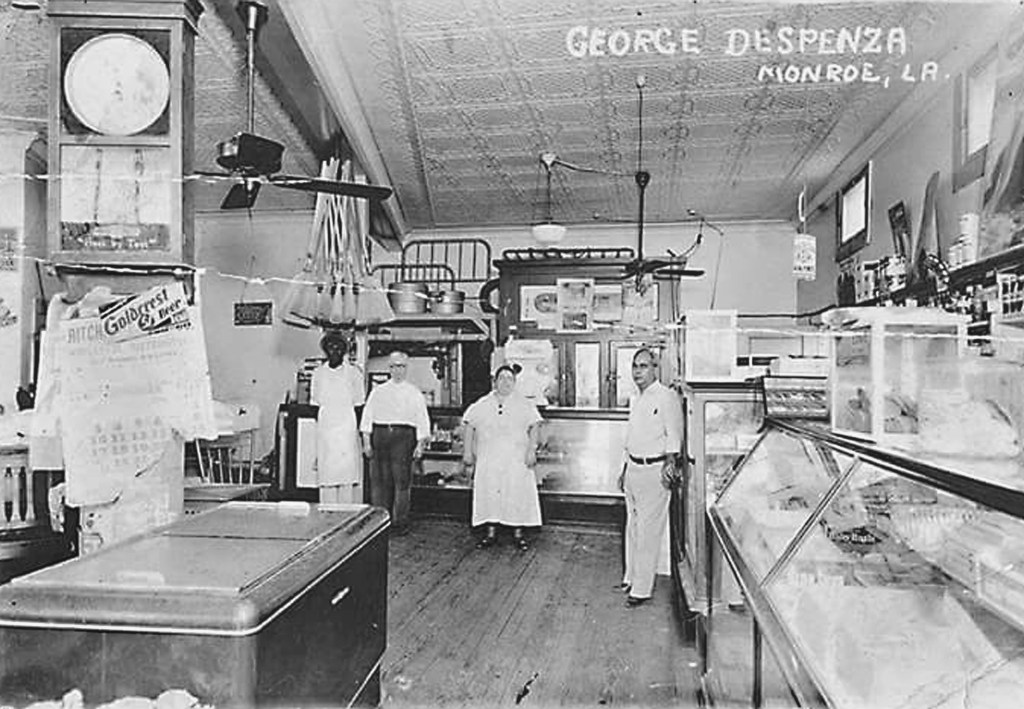 George Dispenza was born in Palermo, Sicily in 1881. When he was twenty, he came to America and settled in Monroe. George opened a store at 117 DeSiard Street, although I found evidence of another store of his at the corner of 14th and Washington. I think the above photo shows him and his wife Consiglia. I don’t know which man is George. No one was identified in the above photo. George passed away in Monroe in 1945 at the age of 64 and is buried in St. Matthew Cemetery.