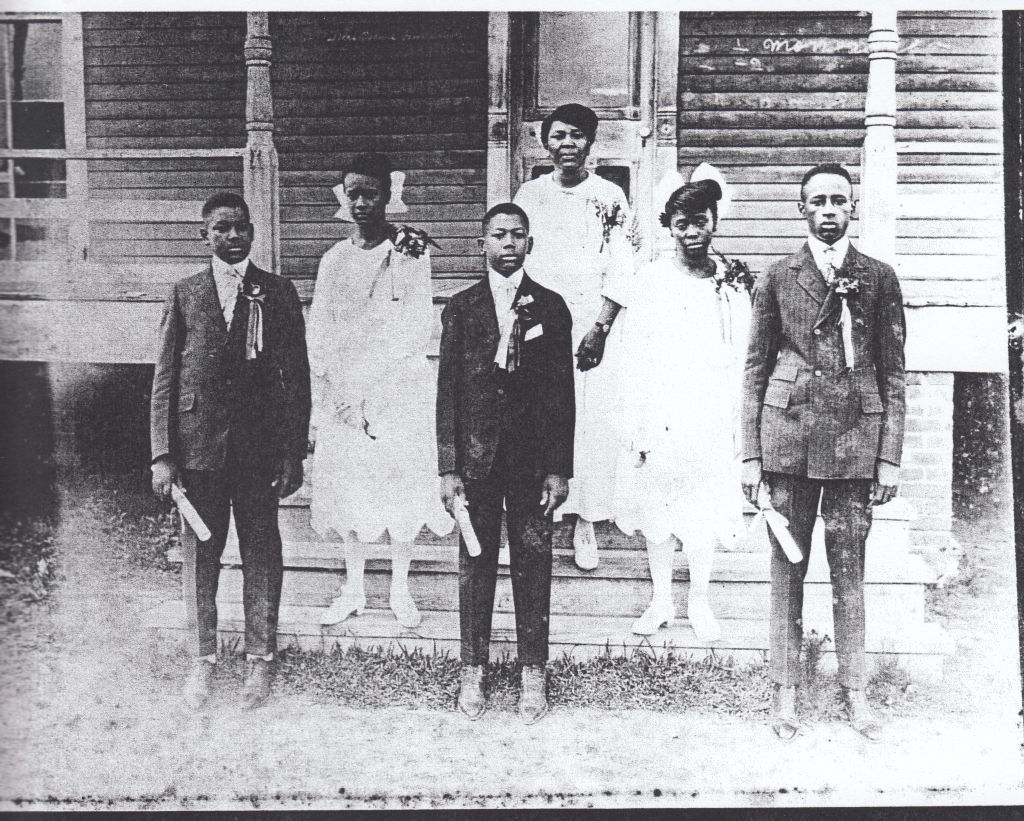 While going through our photo archives, I found this little gem I didn’t know we had. It shows a graduating class of the Monroe Academy (1000 Texas Avenue), which I have talked about before. Using the list I have of students, which I have also posted about before, I suspect this was taken in 1914. The students and one teacher have been identified on the back as (left to right) Arthur H. Johnson, ____ Williams, Foraker W. Johnson, Venetta Hodge, Bernard Williams and on the steps behind the group is locally famed educator Henrietta Windham Johnson. She would become the principal when Professor M.J. Foster moved to the Monroe Colored High School.
