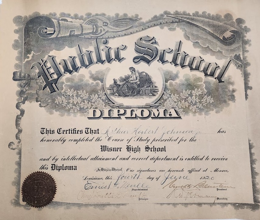 I have always wondered when Wisner school closed. A few weeks ago, i was given a High School diploma from Wisner, dated 1920. I nearly cried! It was for future Doctor Arthur Herbert Johnson, Jr, son of A.H. Sr. and Henrietta Windham Johnson. This got me wondering again as to when the school closed. I think I found it in an article about how the Fire Marshal had cited and ordered demolished those buildings not made fire safe. This is the paragraph I found: